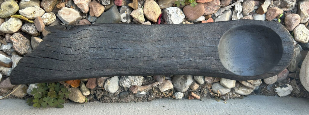 Nun liegt diese schwarze Planke in meinen Händen, schwer vom Gewicht der Zeit. Aus ihr habe ich einen Löffel geschnitzt – nicht zum Essen, sondern als Gefäß für die Erinnerung. Ein Löffel, der nicht den Hunger stillt, sondern die Geschichten nährt, die uns mit der Tiefe der Vergangenheit verbinden.